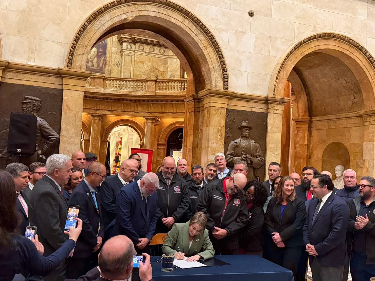 A milestone day at the State House yesterday. After years of hearings, meetings and advocating, An Act Relative to Assault and Battery Upon a Transit Worker, was signed by Governor Maura Healey yesterday. The bill adds transit workers to the public service worker protection in state law, expanding their protections. This is a huge victory for transit workers who face violence everyday just for doing their jobs. I was so thrilled to see it finally cross the finish line and celebrate with the men and women who made it possible. Thanks to the lead sponsor in the Senate, Senator Nick Collins , Speaker Mariano, Senate President Spilka, Chairman Michael Day, State Senator Sal DiDomenico and many more who helped get this bill passed. And the biggest thank you of all to the men and women in our public transit industry who not only fought for this bill but provide an essential service everyday. I’d like to especially thank Billy Beradino and Boston Carmen's Union Local 589 who worked tirelessly on this issue. You got the job done. I’m honored you allowed me to sponsor this bill and fight along side you.